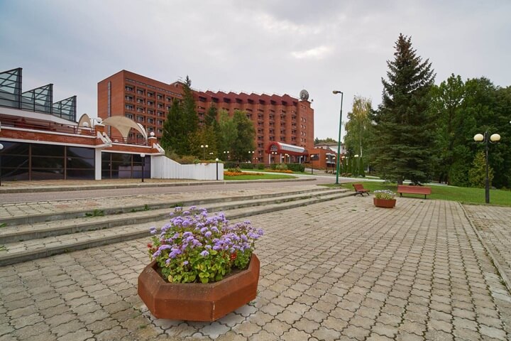 На благоустроенной и ухоженной территории 103 Га архитектурный комплекс 8-этажного здания пансионата, расположенного на высоком берегу реки Каширки, идеально сочетается с окружающим ландшафтом. С балконов номеров открывается живописный вид на окрестные леса и поля.